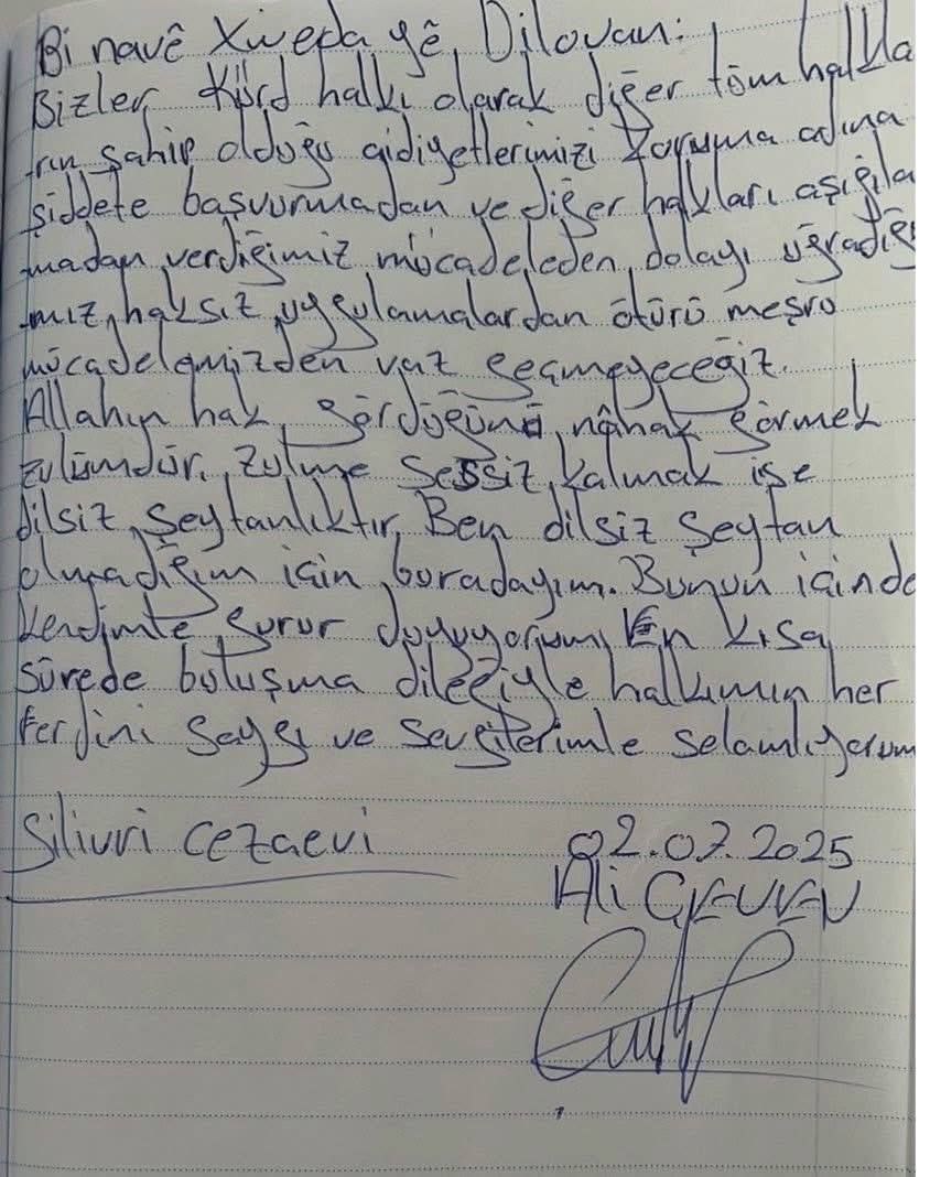 عەلی لە دوای گرتنەکەی ئەم نامەیەی بۆ رای گشتی نووسیوە: