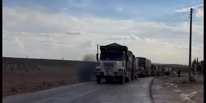 کاروانێکی ١٧ بارهەڵگری فریاگوزاری و پێداویستییە سەرەتاییەکان لە باکوری کوردستانەوە گەیشتە کۆبانێ
