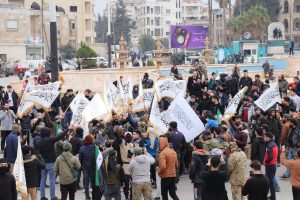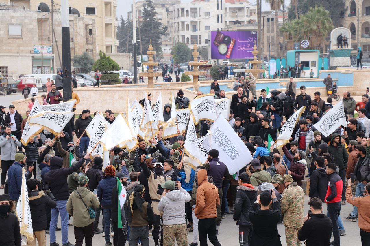 لە ئیدلب خۆپیشاندانێک بەڕێوەچوو، کە ئاڵای “تەوحید” (تەوحید) بەرزکرایەوە و داوای جێبەجێکردنی یاسای شەریعەت لە سوریا کرا