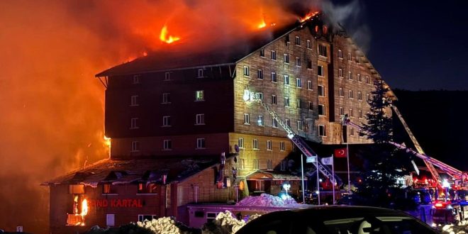 لە ئەنجامی کەوتنەوەی ئاگر لە هۆتێلێکی 12 نهۆمیی ناوچەی گەشتیاریی کارتاڵکایا تایبەت بە یارییەکانی خلیسکێنەی سەر بەفر، 66 کەس گیانیان لەدەستدا و 51 کەسی دیکەش برینداربوون. سێ وەزیری تورکیاش سەردانی ناوچەکەیان کرد و دادگاش رووماڵکردنی رووداوەکانی پەیوەست بە ئاگرەکەی قەدەغەکرد.