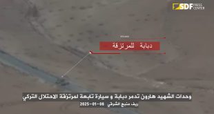 لە چوارچێوەی ئۆپەراسیۆنی یەکینەکانی شەهید هارون ، تانکێک و ئۆتۆمبێلێکی سەر بە چەتەکانی داگیرکەری تورکیان لە لادێکانی ڕۆژهەڵاتی مەنبەج تێکشکاند.
