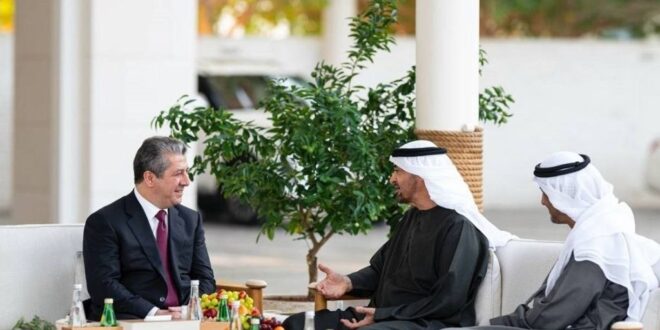 نخستوزیر اقلیم کوردستان و رئیس امارات در شهر ابوظبی دیدار کردند و درباره وضعیت عراق و نیز روابط سیاسی و اقتصادی میان دو طرف گفتوگو کردند.